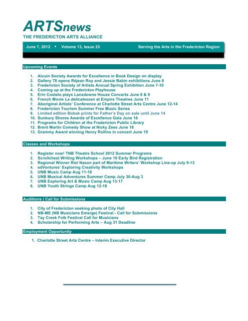 June 7 Fredericton Arts Alliance